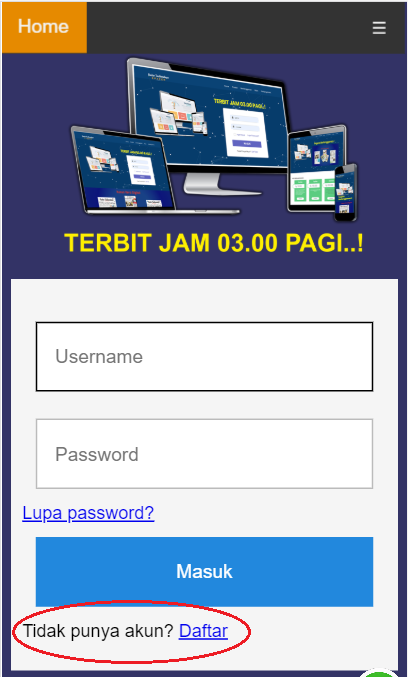 Login terlebih dahulu, jika belum memiliki akun, anda bisa melihat tutorial sebelumnya yang berada diatas menu ini.