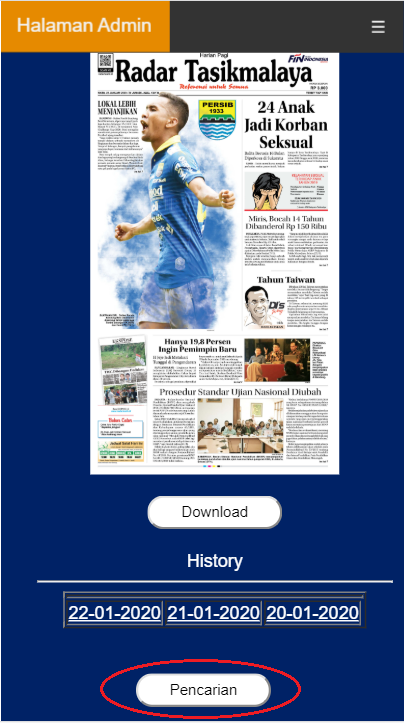 Kemudia anda pilih tanggal yang akan dicari dan jika sudah klik tombol cari, seperti contoh gambar dibawah ini.